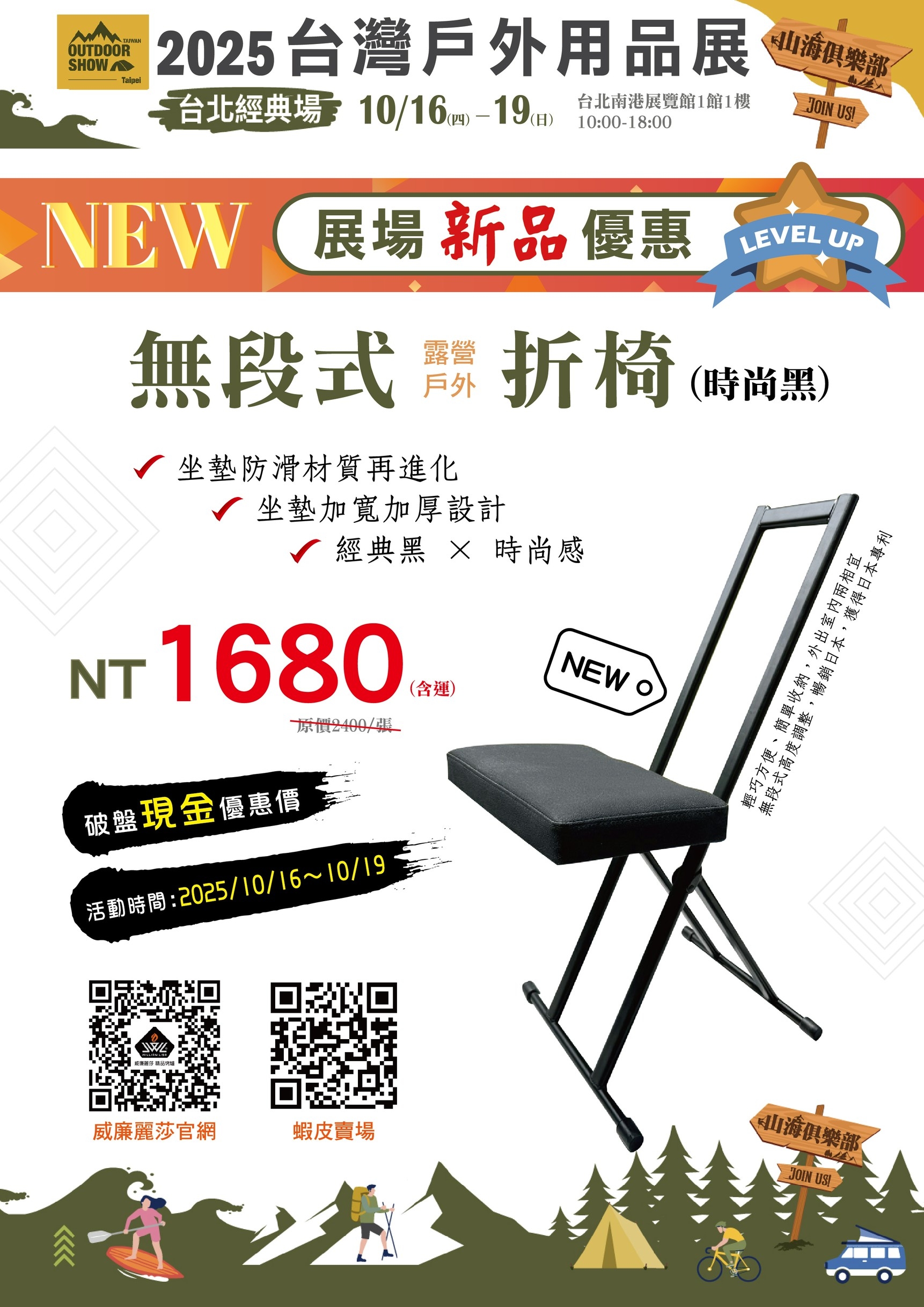 【台灣戶外用品展-台北經典場】(現場獨家優惠篇) ♦2025/10/16(四)-10/19(日) 威廉麗莎攤位(K006)