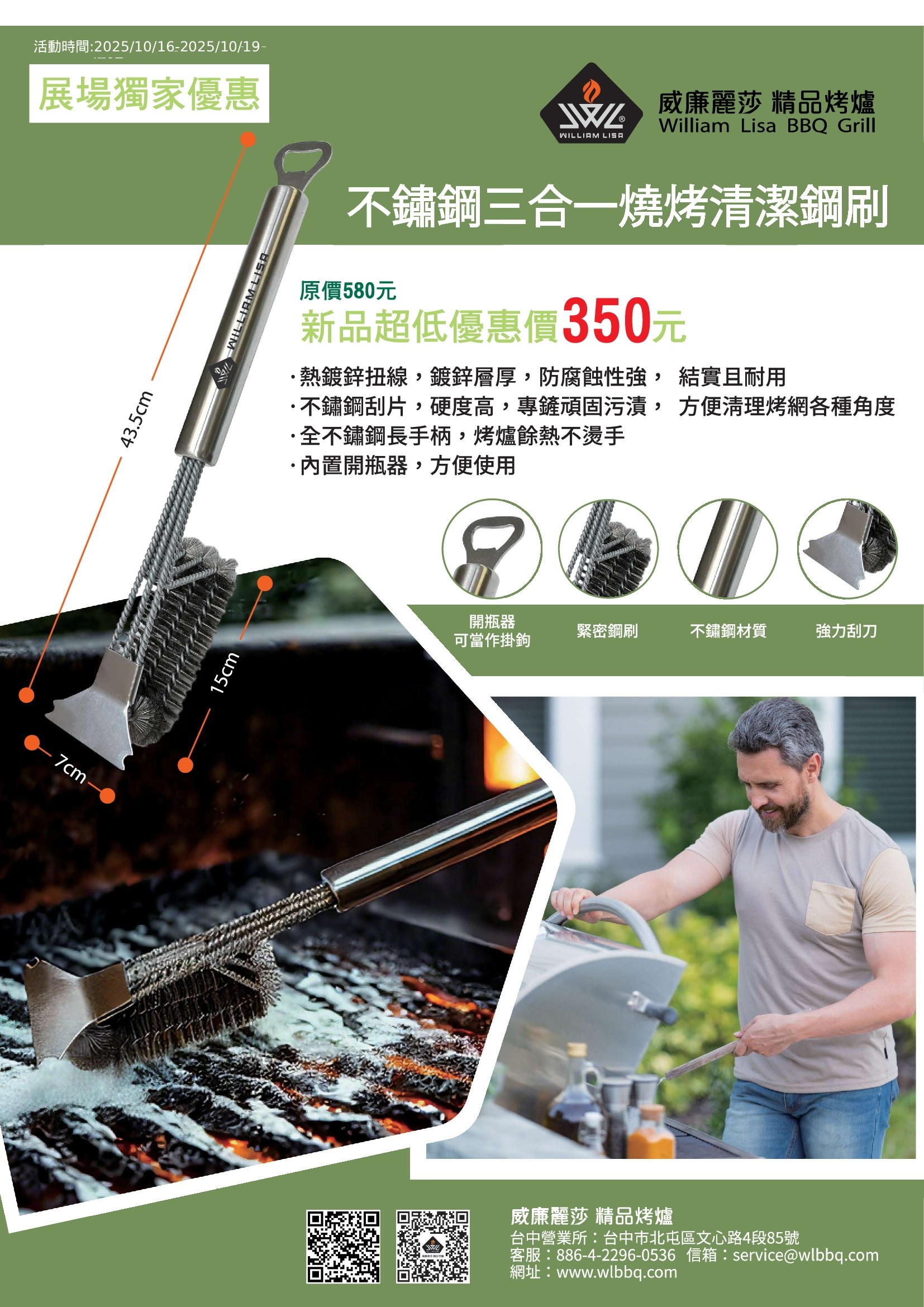 ►買大烤爐送小烤爐(MQ101多功能輕便爐架組) (原價 NT 1,499元) 再加送不銹鋼三合一烤肉清潔刷(市價580)再享免運