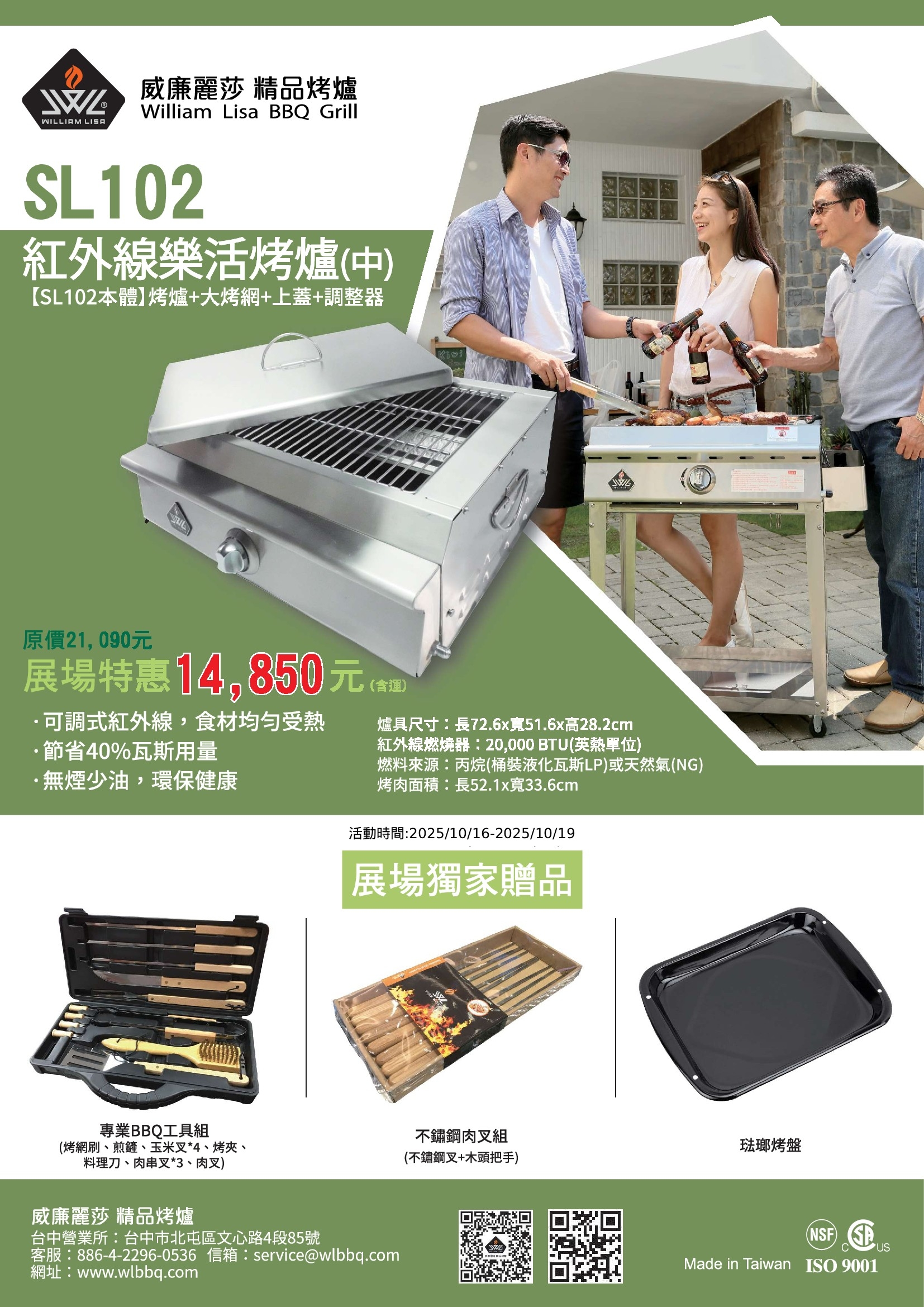 ►紅外線樂活烤爐(中)SL102本體買一送三(12件工具組、8入肉叉組和黑色琺瑯烤盤)-展覽優惠→ NT 14,850 (原價 NT 21,090元)