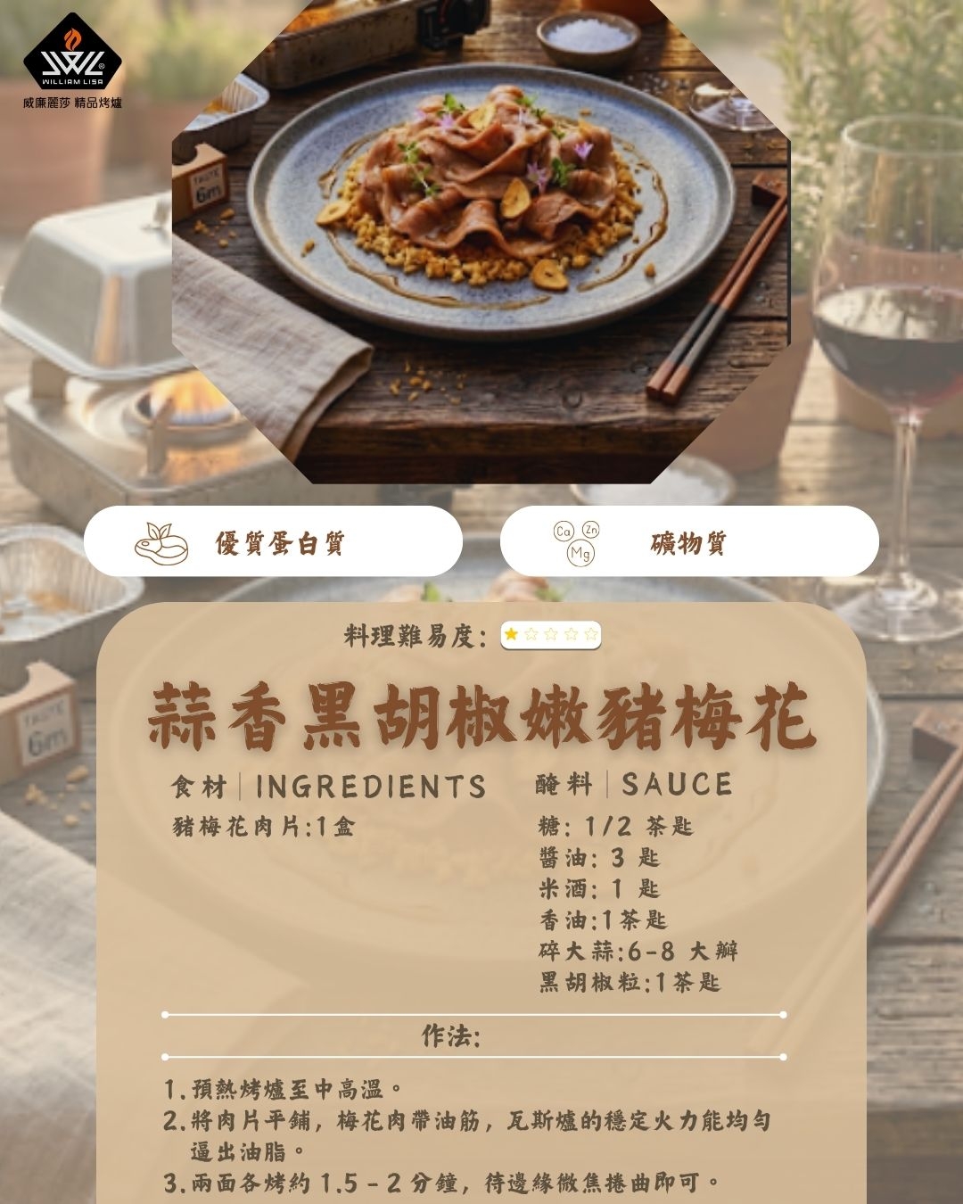 蒜香黑胡椒嫩豬梅花